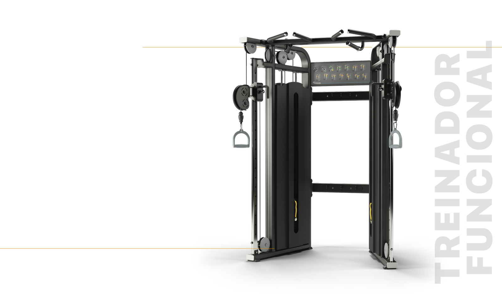 Pontos de ajuste claramente indicados tornam a utilização intuitiva, o ajuste da roldana com uma só mão permite uma fácil operação e os cartazes destacam os grupos musculares direcionados e o posicionamento adequado do utilizador para uma ampla variedade de exercícios.